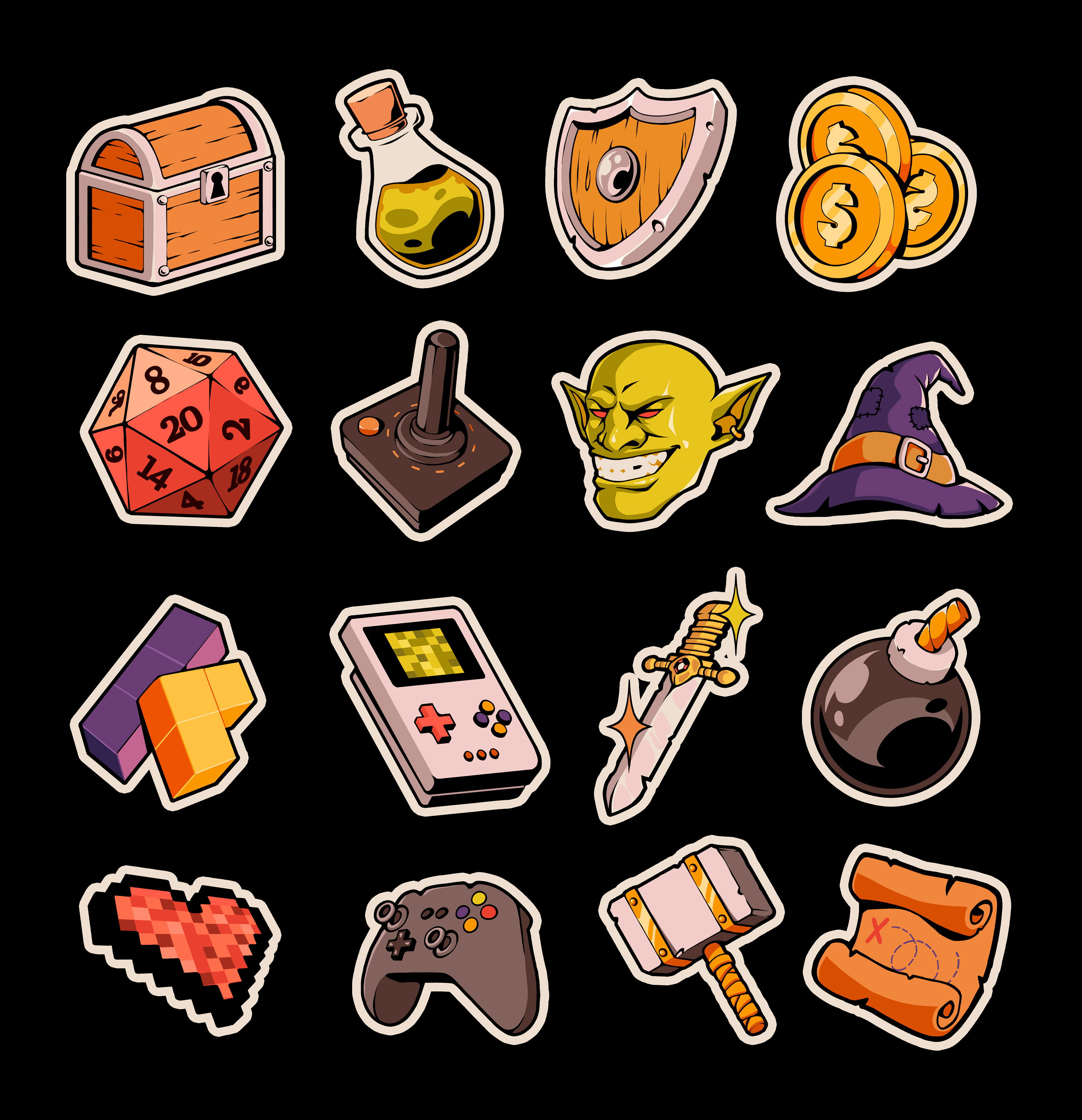 This sticker project was focused on the gamer/geek theme. Bringing references from RPG and video games.